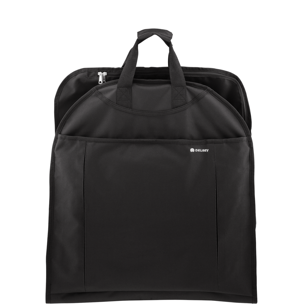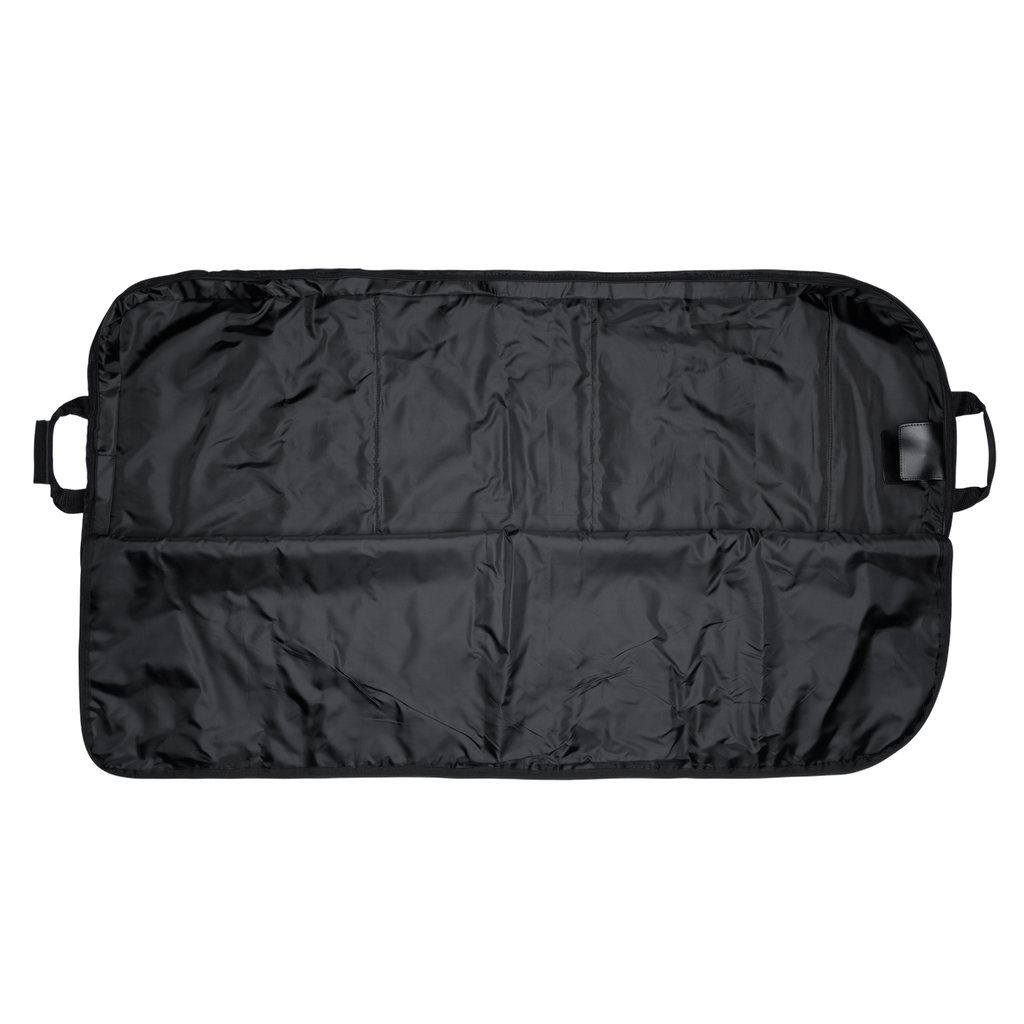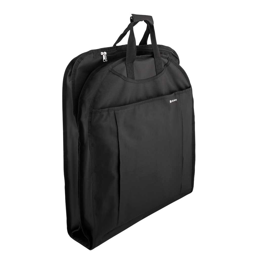 Lightweight yet durable, this cover is perfect to keep clothing protected and wrinkle-free for an overnight trip or a formal occasion. Universal clamping system secures hangers from closet. Two zippered pockets for accessories. Handles fasten together for easy carrying.